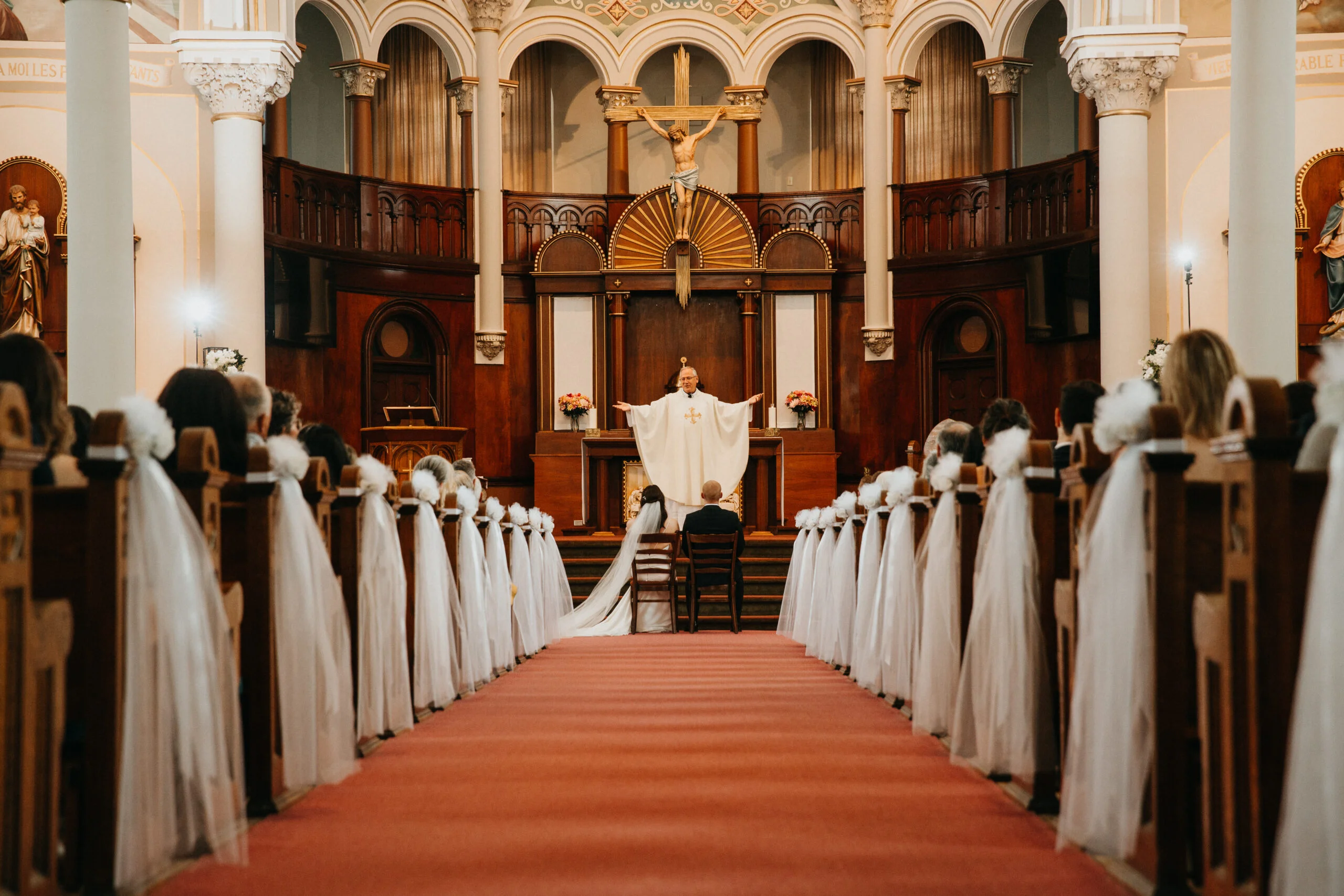 Ashley and Cody’s unforgettable wedding kicked off with a touching ceremony at the beautiful St. Joseph Catholic Church, where they exchanged vows in front of their closest family and friends. The church’s classic charm, combined with the couple’s deep emotional connection, created an intimate atmosphere. As they promised to spend their lives together, the historic setting added a meaningful sense of tradition to their special moment.